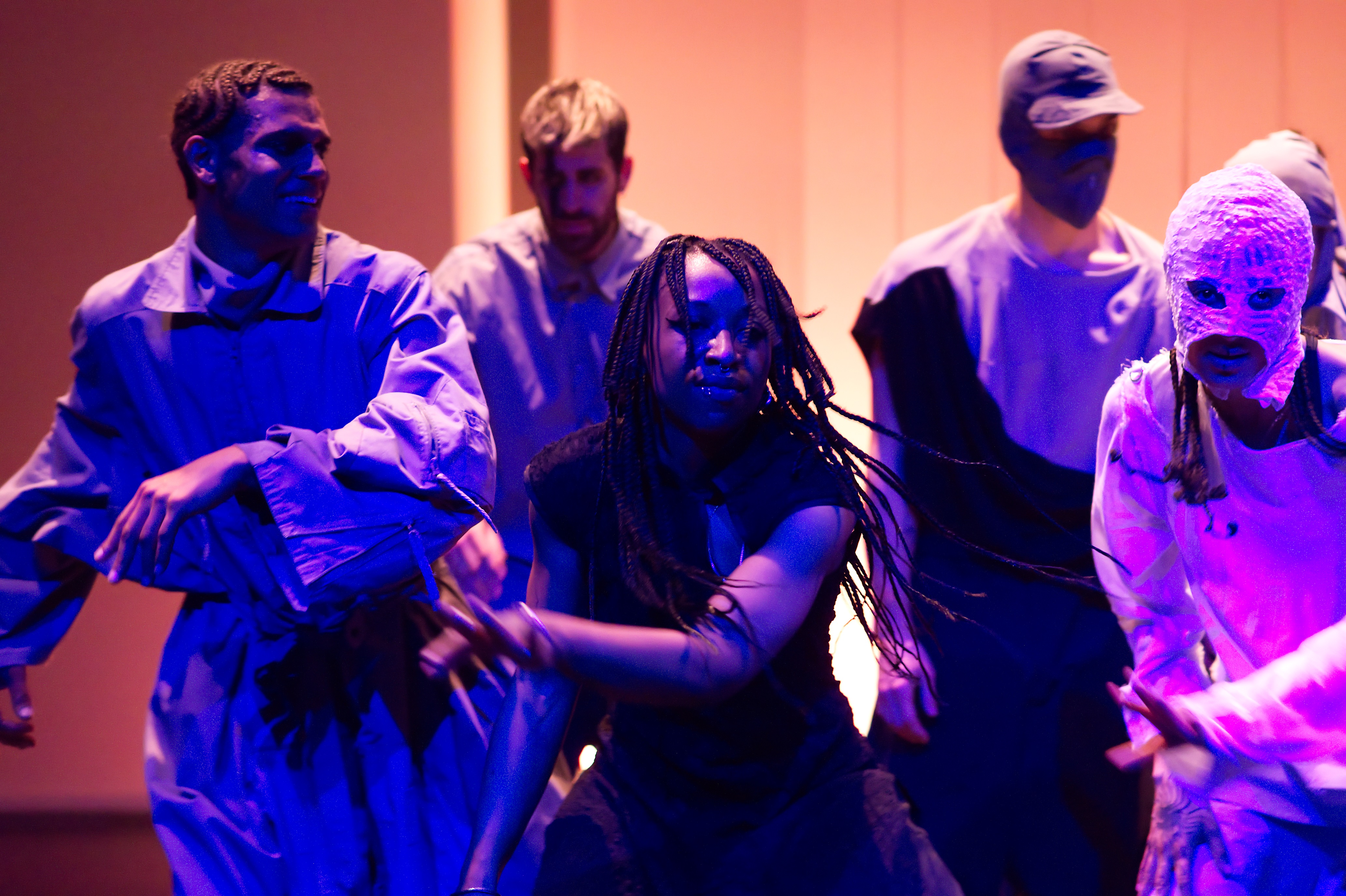 Insgesamt treten neun Tänzerinnen und Tänzer in Outfits auf, die ihre Körper teils stark verhüllen und mit Kappen, Tüchern und Gesichtsmasken alle individuell sehr eigenwillig gestaltet sind. Manches erinnert an Beduinen, anderes an Mutanten. Allein die Haptik der Stoffe und wie diese getragen werden ist so divers, dass man die Gruppe sofort für eine SiFi-Fortsetzung von „Dune“ engagieren müsste.