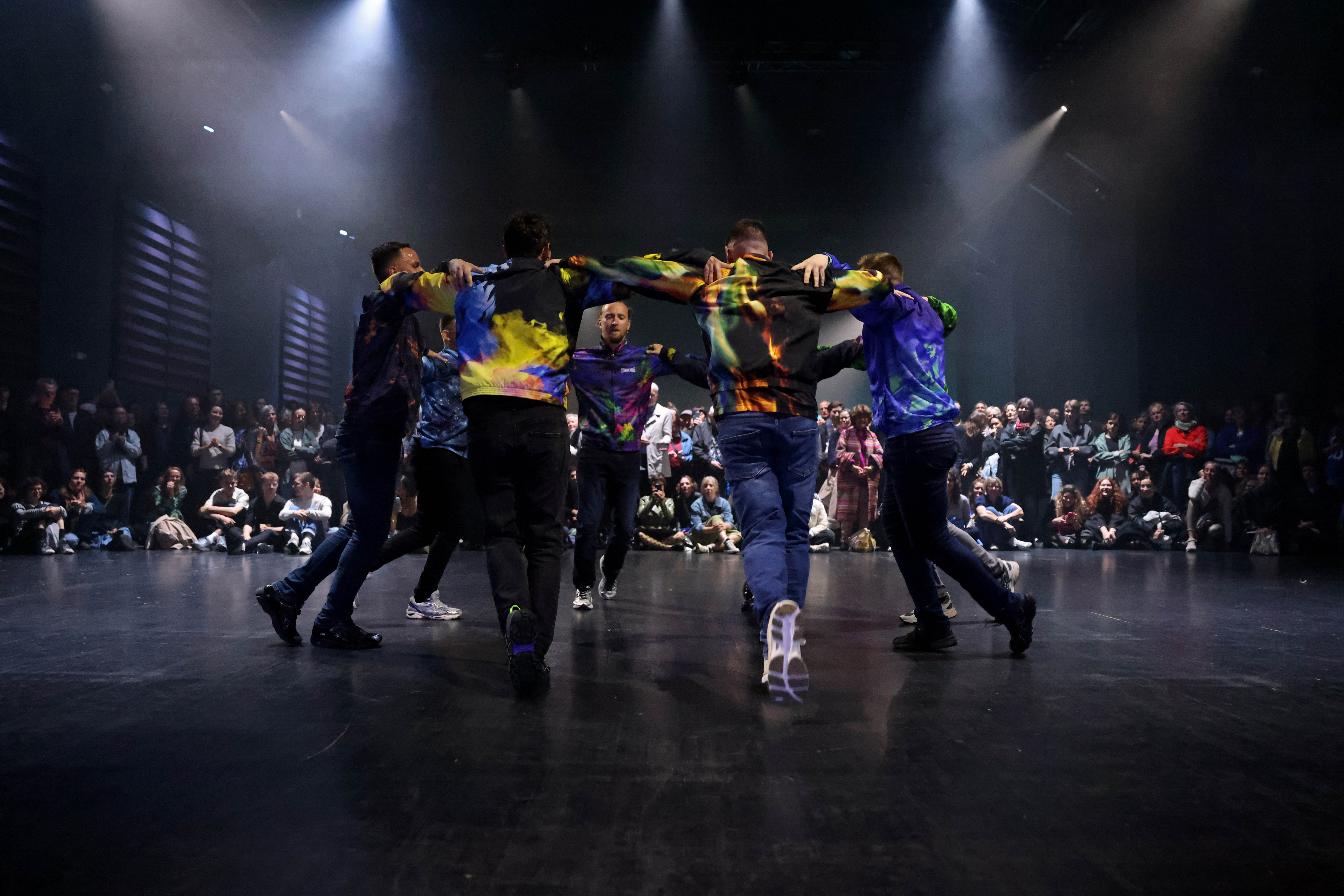 Während noch alle Zuschauenden gefangen sind in der Betrachtung dieser Performance, geht es in der anderen Hälfte des Raums schon wieder weiter. Hier gibt es eine Tanzeinlage. Die Jump-Styler, die sonst normalerweise in Clubs, allein für sich oder für Videoclips jumpen, sind das Highlight des Abends.
