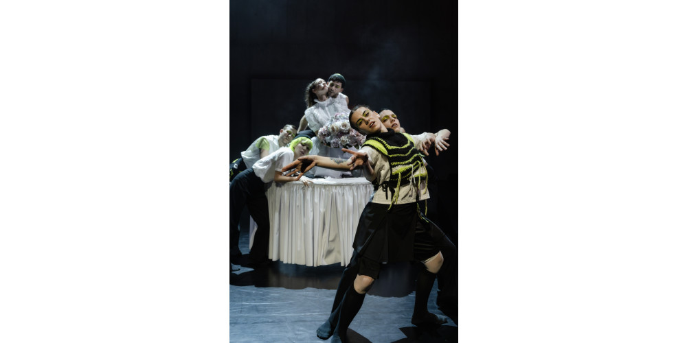 Raffiniert geht der Nachwuchs mit mehr oder weniger klar definierten Haupt- und Nebenfiguren um sowie deren sporadischer Herauslösung respektive (Wieder-)Verschmelzung mit dem Rest der im Stück Mitwirkenden. Die Gruppe als solche behält dabei konstant eine wichtige Rolle – sei es als fluides Element eines Gedankenstroms in González’ „Echoes of a Collapse“, als ebenso abgründig-bürokratiegewaltige wie emotionale Herausforderung in „La Grande Marche“ von Krähenbühl oder als skurriler Familienclan in Mirditas surrealistischem „DaDa Fam“, wo zur großen Erheiterung der Zuschauer*innen die Irrationalität fröhliche Urstände feiert.