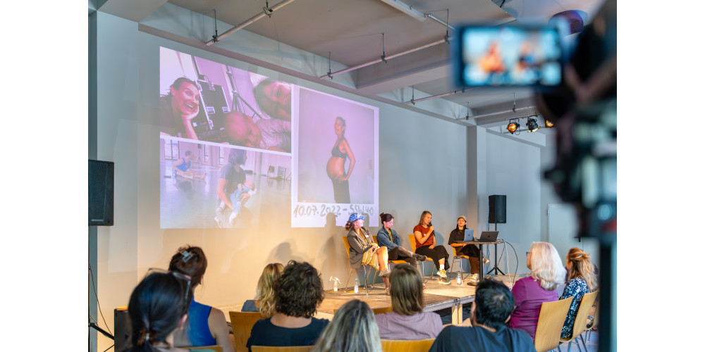 Den Anfang machten Choreografin Emi Myoshi und Tänzerin Anna Kempin des Freiburger Shibui Kollektivs. Beide skizzierten Erfahrungen wie Kündigung am Stadttheater oder Perspektivlosigkeit wegen ihrer Schwangerschaft. Die im Tanz körperlichen Herausforderungen und Leistungsansprüche, die Mütter neben all den strukturellen Hürden meistern müssen, wurden hier wie in allen weiteren Gesprächsrunden besonders deutlich. Im von Myoshi gegründeten Shubui Kollektiv, das im Übrigen Freiburgs erste institutionell geförderte freie Tanzkompanie ist, fanden beide eine Heimat, die ihre künstlerischen und privaten Bedürfnisse miteinander vereinte. Zum Beispiel berichtete Anna Kempin davon, dass Kursteilnehmer*innen bei ihren Vermittlungsangeboten in der Care-Arbeit mithelfen.