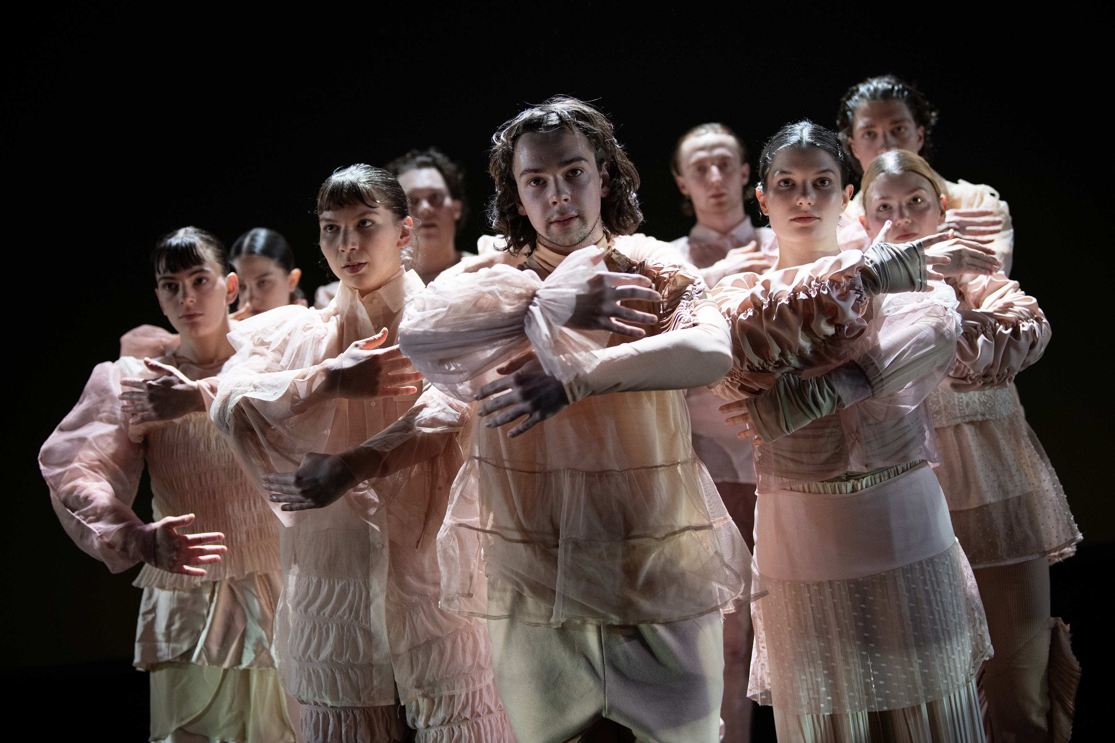 Dass es ihr jedes Mal aufs Neue gelingt, die Heterogenität einer nicht primär tanzaffinen bzw. -geschulten Gruppe dazu zu bringen, auf der Bühne ein harmonisierendes Ensemble abzugeben, das sowohl Schrittkombinationen als auch den Raum souverän beherrscht, prägt den Reiz von Wachters Aufführungen. Rudolf Labans im Kontext des Ausdruckstanzes vielzitierter Leitspruch „Jeder Mensch ein Tänzer“ gerät unter Wachters Regie oft zu einem Mittel einer publikumswirksamen Charmeoffensive. Talententdeckungen à la Vitaliy Korobovsky eingeschlossen. Mit vollem Körpereinsatz und Anleihen beim Breakdance überzeugt dieser – seit 2022 in München wegen des Kriegs in seiner ukrainischen Heimat – unter anderem als zunehmend vereinsamter, sich nach Liebe sehnender Influencer auf Jagd nach Followern und dem zwanghaften Streben nach hoher Reichweite, Likes und Anerkennung in sozialen Netzwerken. Der einzige, dem man gerne zusieht, wenn das gesprochene Wort in den Hintergrund rückt und pur physischer Ausdruck übernimmt, bleibt er nicht.