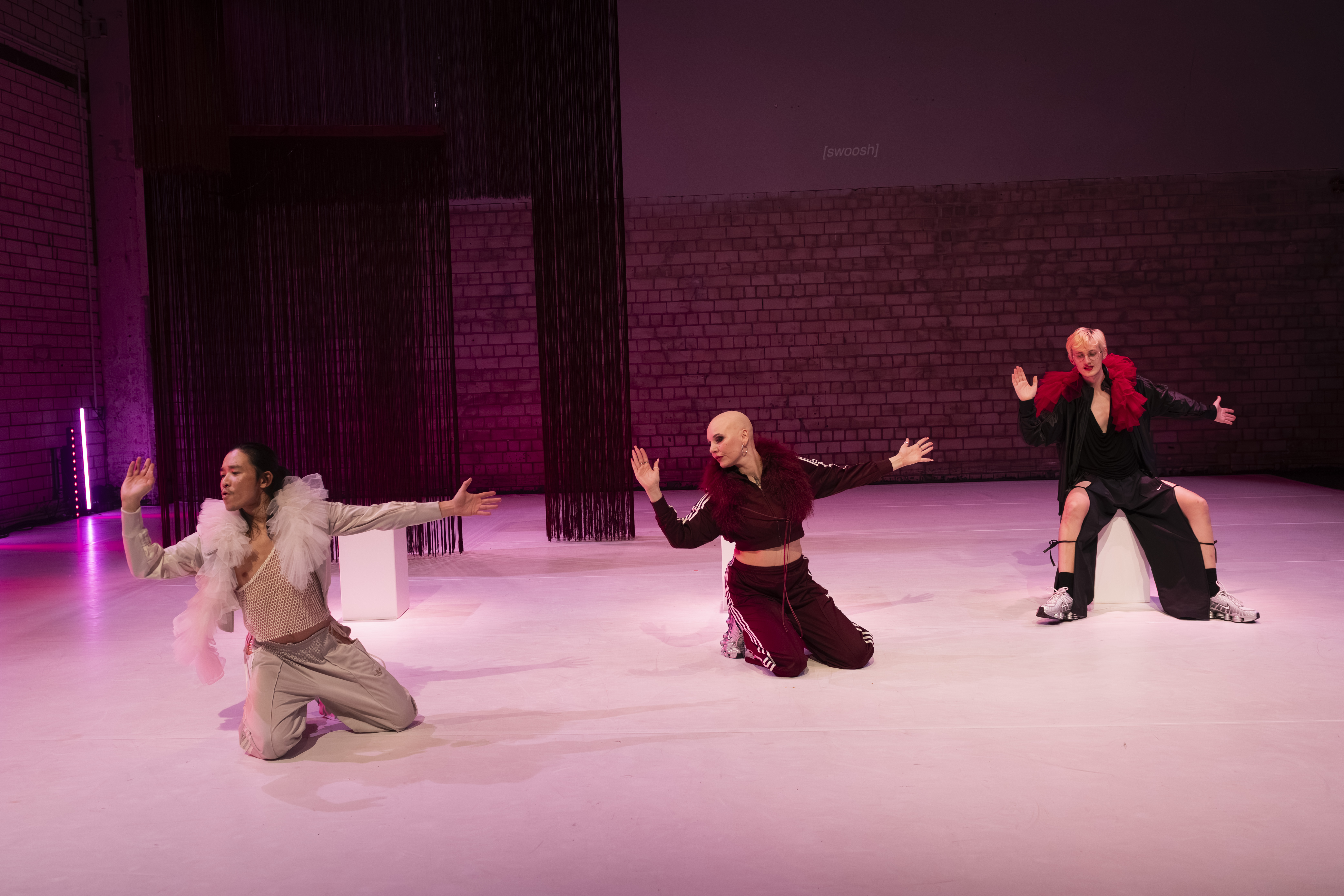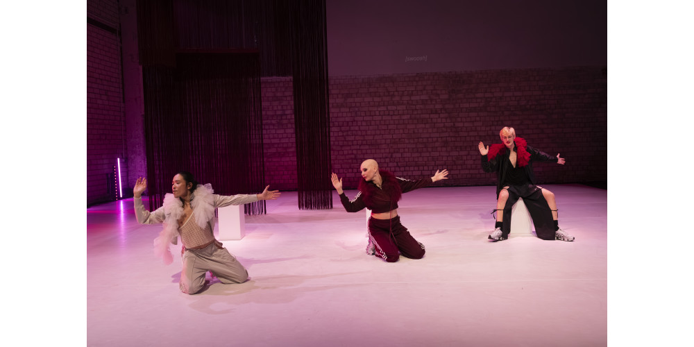 Es dauert mindestens eine halbe Stunde, bis dann auch der ikonische „Bolero“-Rhythmus leise den Bühnenraum des HochX erfüllt. Raymond Liew Jin Pin mit seinem lasziv-spielerischen Blick, Lisa Rykena mit ihrer einzigartigen Körperlichkeit und ihrem Talent für komödiantisches Timing und Emil Leske mit seiner einladenden, warmen Präsenz finden immer wieder in unisono-Momenten zusammen. Füße stampfen auf den Boden, Arme greifen ausschweifend zur Seite, schwingen als Flügel eines Schwans, Oberkörper pulsieren über den Boden, immer weiter, immer intensiver... Und dann macht Ravels Orchesterstück den Rest.
