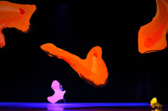 Das Entrée machte Michael Simons „Der gelbe Klang“, eine freie Nachgestaltung des Originals, das übrigens zu Lebzeiten Kandinskys nie aufgeführt wurde. Der Licht- und Bühnendesigner Simon, mit 23 von William Forsythe entdeckt und durch seine Arbeiten für den Ballettrevolutionär vom Tanz infiziert, lässt verschiedene Utensilien und Körperteile über die Bühne tragen.